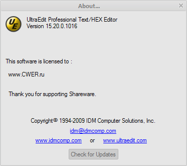 Скачать программу UltraEdit 15.20.0.1016 (14,7 МБ):