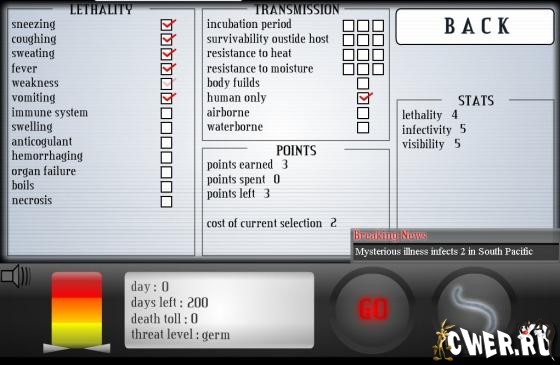 В игре реализованы очень много фишек для реализации ваших злых замыслов - заразить планету можно всем чем угодно и даже пресловутым свиным гриппом.