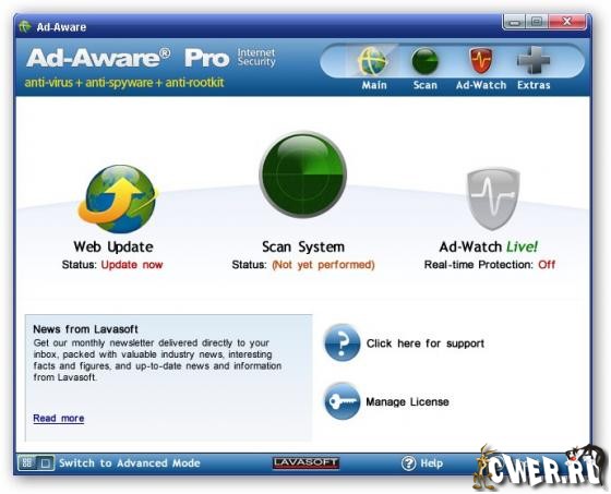 Lavasoft Ad-Aware – это продукт, созданный для обеспечения надежной защиты компьютера от известных угроз – кражи личных данных, агрессивной рекламы, сайтов-паразитов, мошеннических программ, некоторых традиционных троянов, номеронабирателей, вредоносных программ (Malware), браузерных "перехватчиков" (Browser hijackers) и шпионских компонентов.