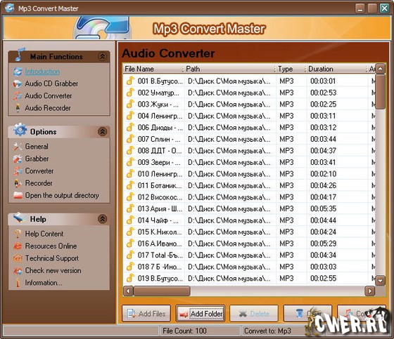 Основные характеристики MP3 Convert Master: