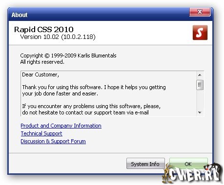 Скачать программу Blumentals Rapid CSS 2010 v10.0.2.118 (7,89 МБ):