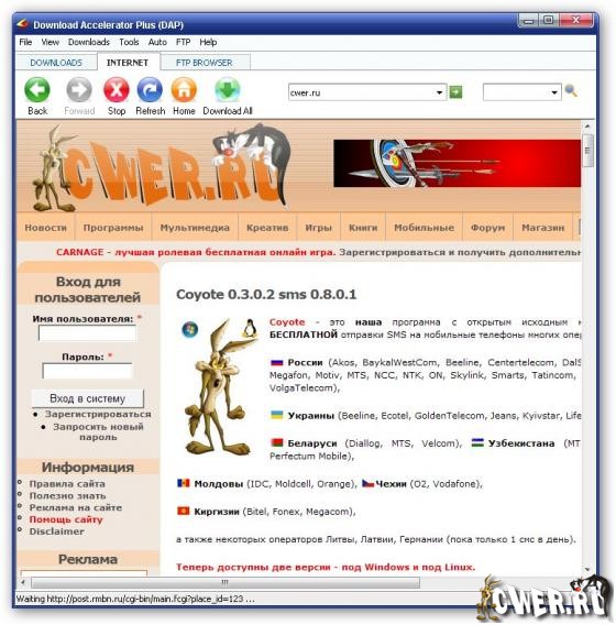 Download Accelerator Plus - менеджер закачек, позволяющей ускорить процесс скачивания файлов из интернета. Поддерживается одновременная загрузка с нескольких серверов, докачка после разрыва соединения, автовыключение компьютера после завершения сеанса работы. Утилита имеет встроенные средства поиска файлов на серверах. Менеджер хорошо интегрируется с браузерами, поддерживает работу через прокси и т.д. Имеется русский интерфейс.