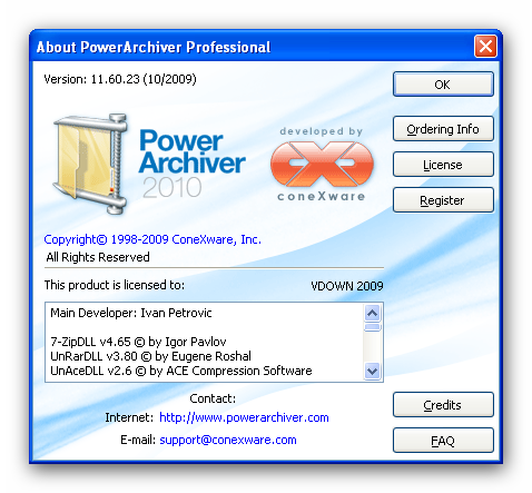 PowerArchiver 2010 - универсальный архиватор с поддержкой всех популярных форматов. Данный архиватор поддерживает форматы ZIP, RAR, 7-ZIP, CAB, LHA (LZH), TAR, TAR.GZ, TAR.BZ2, BH, ARJ, ARC, ACE, ZOO, GZ, BZIP2, XXE, MIME, UUE, XPI, EAR, WAR, REP, JAR, BK, QWK, Quake PK3, скины WinAMP, самораспаковывающиеся архивы в форматах ZIP и CAB, а так же CD-образы: ISO, BIN, IMG и NRG. Это современное приложение, которое сочетает в себе поддержку практически всех популярных архивных форматов. В случае необходимости можно применить шифрование архивов при помощи алгоритмов AES с разной степенью устойчивости (128-bit/192-bit/256-bit). Интерфейс поддерживает смену скинов, работает как в классическом, так и современном виде. Поддержка Windows 7.