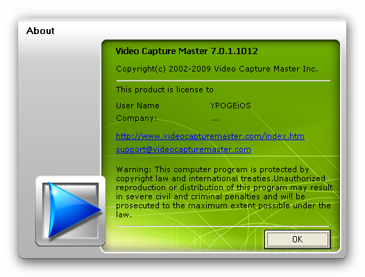 Video Capture Master - программа для записи видео и захвата скриншотов с различных видеоустройств. Поддерживаются Web-камеры, ТВ-тюнеры, устройства захвата и цифровые камеры. Причем для последних имеются средства управления, благодаря которым можно в удобном виде ими управлять. Программа предоставляет доступ к настройкам всех поддерживаемых видеоустройств. Вы сможете записывать видео в реальном времени, просматривая при этом изображение или телеканал. Имеется дополнительная возможность наложения на записываемое видео или скриншоты водяных знаков, в качестве которых может использоваться обычный текст или изображение-логотип. В качестве основного формата записи разработчиками предлагается AVI, но вы можете для захвата видео и звука использовать произвольные кодировщики, установленные у вас в системе.