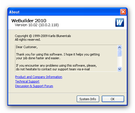 Blumentals WeBuilder - комплексное решение для создания web-проектов практически любой сложности. Удобный редактор позволяет создавать документы HTML, CSS, javascript, VBScript, PHP, ASP, SSI, Perl со всеми необходимыми функциями. Но при всей своей мощности WeBuilder загружается очень быстро.