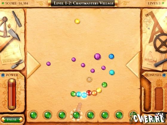 Отправляйтесь в захватывающее путешествие, в котором вы приобретете навыки для того, чтобы стать мастером игры в шарики. Добейтесь признания, вызывая на поединки лучших игроков в шарики со всей империи. В этой игре только горячий ум и холодный темперамент могут принести блестящую победу. Соревнуйтесь с самыми почитаемыми людьми древней эпохи.