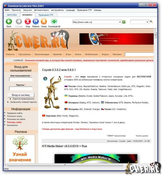 Download Accelerator Plus - менеджер закачек, позволяющей ускорить процесс скачивания файлов из интернета. Поддерживается одновременная загрузка с нескольких серверов, докачка после разрыва соединения, автовыключение компьютера после завершения сеанса работы. Утилита имеет встроенные средства поиска файлов на серверах. Менеджер хорошо интегрируется с браузерами, поддерживает работу через прокси и т.д. Имеется русский интерфейс.