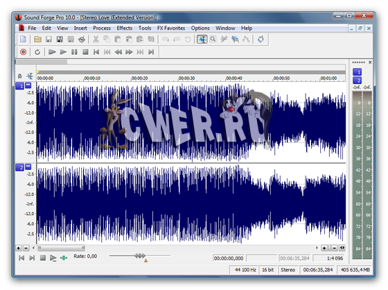 - Редактируйте стерео или мультиканальный звук в реальном времени. Используйте знакомые команды Windows для того, чтобы вырезать, скопировать, вставить, смешать или плавно наложить аудио.