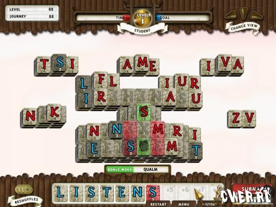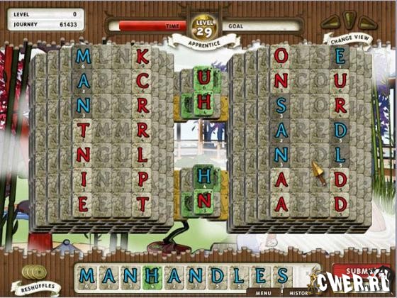 Данная игра является уникальным гибридом традиционной головоломки маджонг и игр в слова типа «буквоеда». Задача осталась такой же, как и в маджонг – вам нужно убирать с поля фишки, однако вместо того чтобы подбирать символы вам предстоит составлять слова. Чем длиннее слово, тем больше очков вы получите.