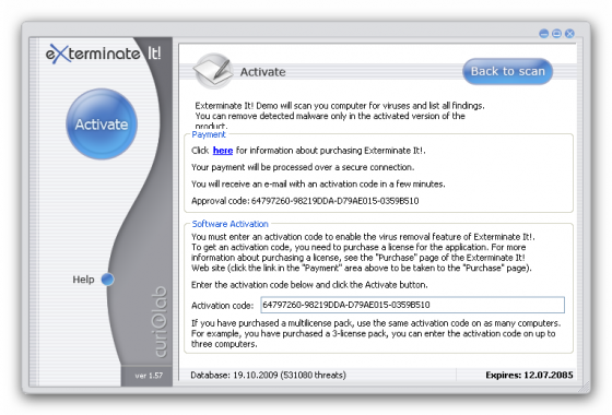 Exterminate It! - это антивирусное и антишпионское решение защитит ваш компьютер, подключенный к Интернету и ноутбук с легкостью и на самой высокой скорости! Данная программа принадлежит к самому последнему поколению сканеров вредоносных программ, которая содержит различные типы обнаружения, включая поиск по сигнатурам и систему поиска, основываясь на поведении. Exterminate It! удаляет вирусы, Трояны, вредоносные программы, шпионские угрозы, рекламные программы, программы дозвона – практически любые типы инфекций, которые могут повредить вашей компьютерной системе!