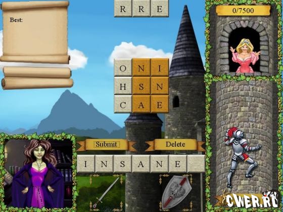 Злая колдунья похитила прекрасную царевну и упрятала в высокую башню. Чтобы дополнительно обезопасить свою пленницу от посягательств рыцарей, норовящих пробраться наверх, злодейка заколдовала башню. Теперь только смельчак с острым умом, отважным сердцем и отличным знанием английского языка может спасти красавицу из плена. Составляйте слова из падающих кубиков с буквами и спасите царевну. Чем длиннее слово, тем больше очков вы получите. Разрушьте чары колдуньи в оригинальной игре, соединяющей в себе элементы классических головоломок!