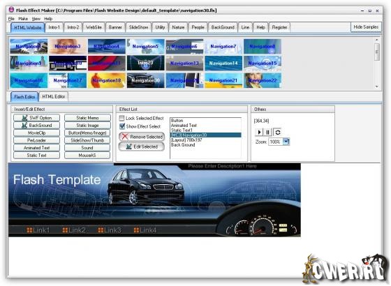 The Flash Website Design enables you to create simple as well as complex Flash animations, where by you can combine different fonts and effects within a single Flash animation. Flash Website Design is very user-friendly, wide range effect templates ready for use, and you don't need any Flash/HTML or programming skills to use it.