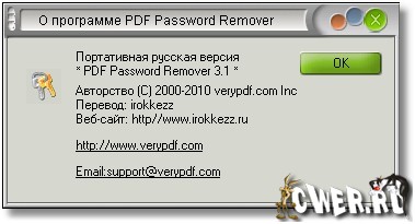 Скачать портативную русскую версию PDF Password Remover 3.1 (1.35 МБ):