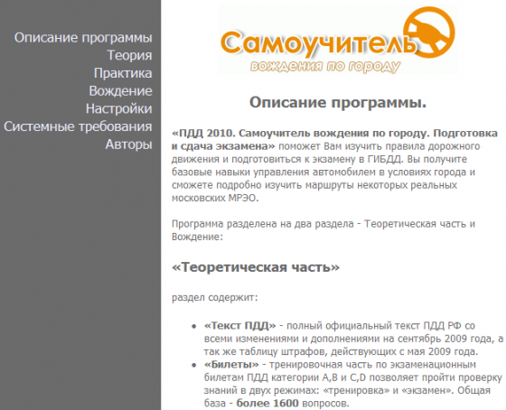 Скачать программу "ПДД 2010. Самоучитель вождения по городу" (171,19 МБ):