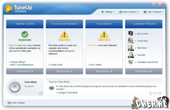 TuneUp Utilities 2010 - финальная версия большого набора всевозможных инструментов для настройки и оптимизации системы. При помощи этой программы вы сможете очищать диски от мусора, удалять неверные записи из системного реестра и дефрагментировать его, оптимизировать оперативную память, управлять автозагрузкой, навсегда удалять файлы с диска при помощи специальной утилиты ”TuneUp Shredder” (дальнейшее восстановление становится невозможно даже при помощи специальных программ), восстанавливать удаленные файлы, изменять внешний вид Windows, и многое другое. Все утилиты этого пакета объединены в единую графическую оболочку. Для запуска той или иной утилиты нужно выбрать ее название в списке и кликнуть по ней мышкой. После этого открывается диалоговое окно, в котором и производятся все соответствующие действия. Пакет объединяет в себе важные функции для оптимизации системы, конфигурации, очистки и обслуживания в современном графическом пользовательском интерфейсе.