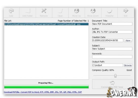 Zilla JPG To PDF Converter - мощный, быстрый, очень удобный и бесплатный конвертор популярных форматов JPG в PDF файлы.