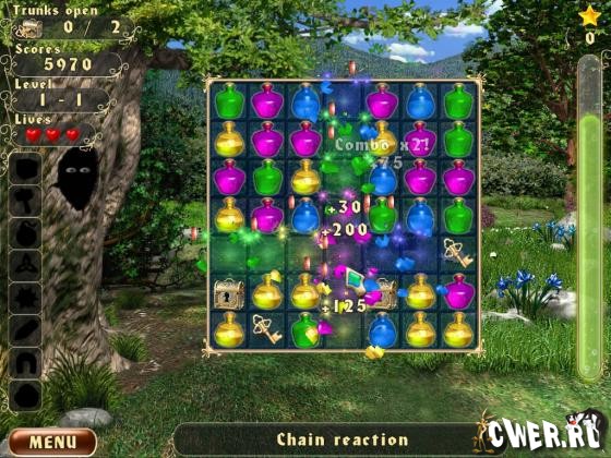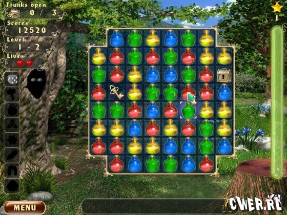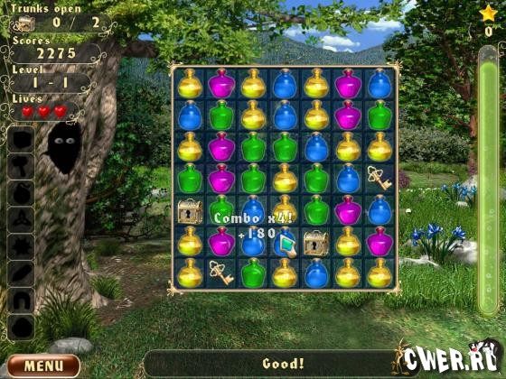 Игра основана на принципе «три в ряд», однако в ней есть своя изюминка. Вам необходимо уничтожать бутылочки с зельями таким образом, чтобы сундучок с сокровищами оказался рядом с золотым ключиком, и вы могли его открыть. Вам необходимо открыть определенное количество сундуков, чтобы закончить уровень.