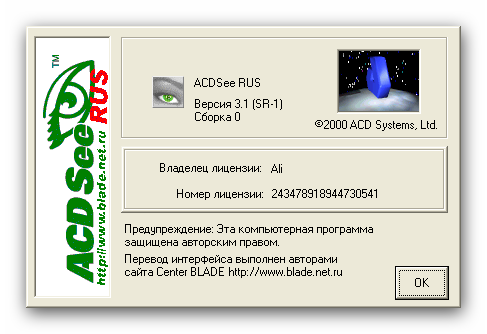 Классная версия ,у меня до сих пор стоит . Лучший просмотровщик картинок из всех !!!