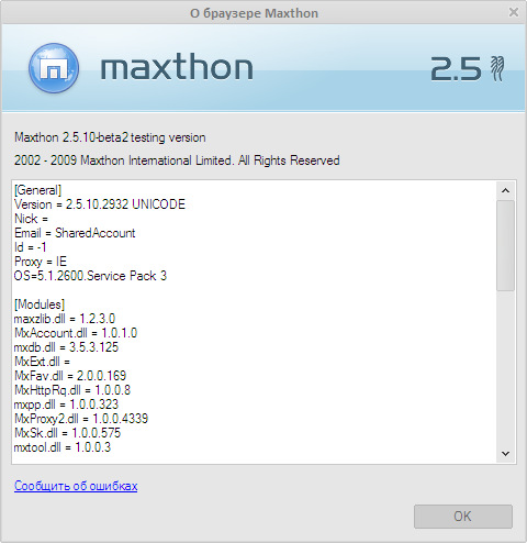 Changes in Maxthon 2.5.10 Build 2932: