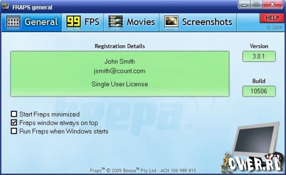 Скачать программу Fraps v3.0.1 Build 10506 (2,44 МБ):