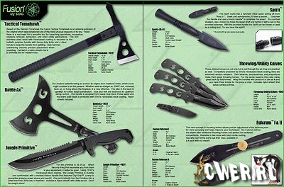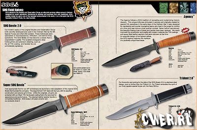 Конечно, у каждого производителя есть модели ножей, которые привлекают внимание. В каталоге SOG 2009 обращают на себя внимание мультитул PowerAssist и нож электрика Kilowatt. Если вы интересуетесь ножами-кредитками, то полюбуйтесь моделью Pentagon. Из нескладных ножей выделяется SEAL Pup Elite (прежде всего закрытой гардой). Ну и конечно, привлекает внимание серия изделий Fusion!