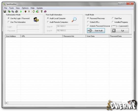 SpotAuditor восстанавливает все Ваши пароли, изъятые из Internet Explorer, ICQ, Far ftp-клиент, SecureFX ftp-клиент, Dial Up, Outlook и MSN messenger, IE Auto Complete Fields. Продукт создан специально для того, чтобы просмотреть и очистить Ваши секретные данные, которые зачастую доступны другим пользователям. Программа также исследует запущенные приложения, посещенные URL, установленные программы, которыми можно управлять на Вашей машине или по сети, если не запрещен доступ.