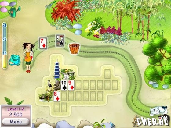 В этой новой карточной игре Вы сможете построить свой великолепный японский сад. Берите карты, двигающиеся на конвейере, и кладите их на игровое поле рядом с картами, которые на ранг ниже или выше. Заполните все пустые ячейки и наблюдайте за тем, как на Ваших глазах расцветает сад.