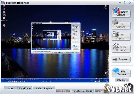 i Screen Recorder – мощный инструмент, который позволит Вам легко захватывать и делать аннотации к чему угодно – в Вашем распоряжении все, что отображается на экране компьютера: окна, объекты, меню, полноэкранный режим, промотка вебстраниц и так далее. Изображения сохраняются в форматах BMP или JPG. Кроме того, программа позволит Вам делать захват видео или изображений с DV, TV-тюнера или других устройств. Пользовательский интерфейс утилиты был основан на двух китах: внешняя привлекательность и быстрый доступ ко всему функционалу программы. Программа имеет три основные кнопки управления, которые находятся в основном окне приложения.