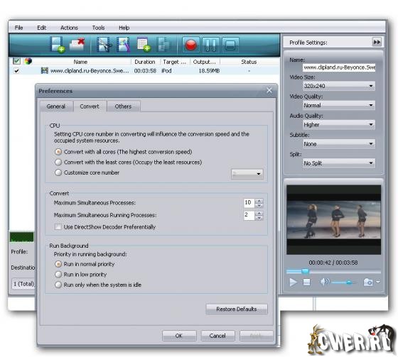 Xilisoft Video Converter - мощный, универсальный видео конвертер. Поддерживает большинство популярных видео форматов, в том числе DVD, VCD, SVCD, MOV, RM, AVI, MPEG, MPEG1, MPEG2, MPEG4, WMV, 3GP, h264 и т.д. Присутствует возможность конвертирования в iPod и PSP видео. Кроме того, программа позволяет с легкостью извлекать аудио из видео с последующим конвертированием в MP2, MP3, AC3, RA, M4A, OGG, AAC и другие форматы. Поддержка h264, PSP MPEG4 AVC, пакетный режим конвертирования, предварительный просмотр во встроенном проигрывателе, выбор и настройка аудио и видео кодеков, настройка параметров конвертирования, простой и удобный интерфейс.