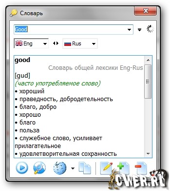 - профилю; добавлена функция поиска перевода в Wiktionary; размер окна словаря теперь