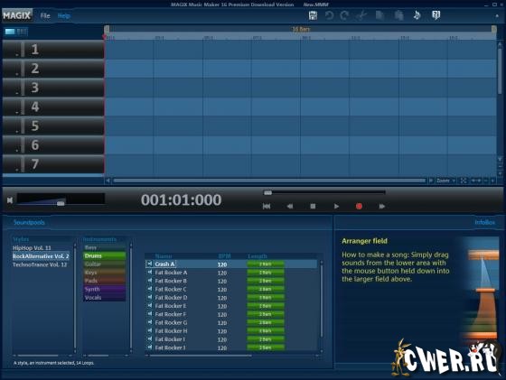 Magix Music Maker 16 Premium является лучшим решением для создания музыки. Этот уникальный пакет включает MIDI-клавиатуру и полу-профессиональные программы для создания музыки. Она идеально подходит для создания потрясающих песен, экспериментальной музыки и захватывающих саундтреков. В версии Premium предоставлены дополнительные возможности, больше звуков, эффектов и функций. Программа предоставляет высококачественные премиум образцы, виртуальные инструменты, MIDI петли, комплекс микшерного пульта и эксклюзивные эффекты. Вы можете создавать свои собственные уникальные записи для создания звуковых петель при помощи драм машины и современного синтезатора.