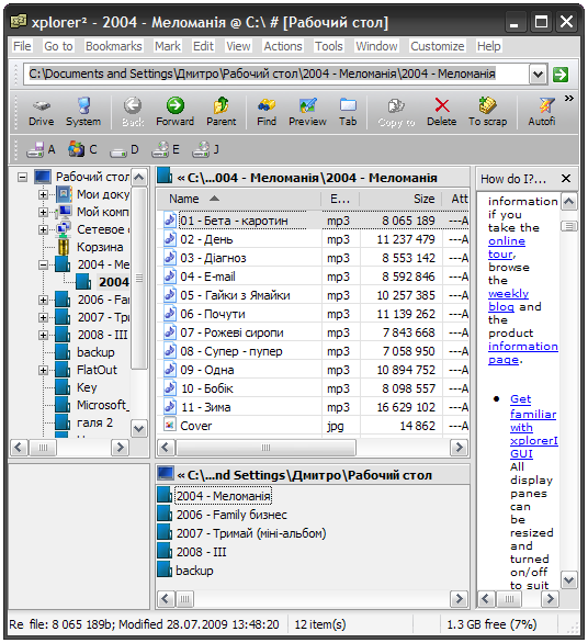 Поддерживается работа с сетевыми дисками, причём, в подключённых сетевых дисках при необходимости происходит автоматическое обновление файлов. Программа может работать как с отдельно взятыми файлами, так и с файлами в пакетном режиме. Для удобства и быстрого открытия какого-либо файла или каталога, можно поставить закладку. Встроенные средства этого менеджера позволяют просматривать графику, предварительно прослушивать аудио и просматривать видео файлы, а также файлы форматов HTML, Text, RTF и Hex. xplorer2 можно рекомендовать для работы и компьютерным новичкам, и пользователям, имеющим большой опыт.