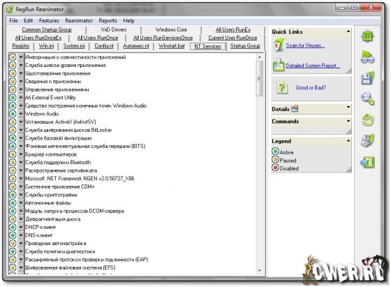 RegRun Reanimator - бесплатная программа для удаления троянов/Adware/Spyware и руткитов. Совместима со всеми известными антивирусами. Имеет приятный интерфейс, проста в использовании, есть возможность восстановления ошибочно удаленных файлов. Есть и такие полезные функции, как резидентный модуль для защиты реестра, менеджер задач, редактор файлов конфигурации.