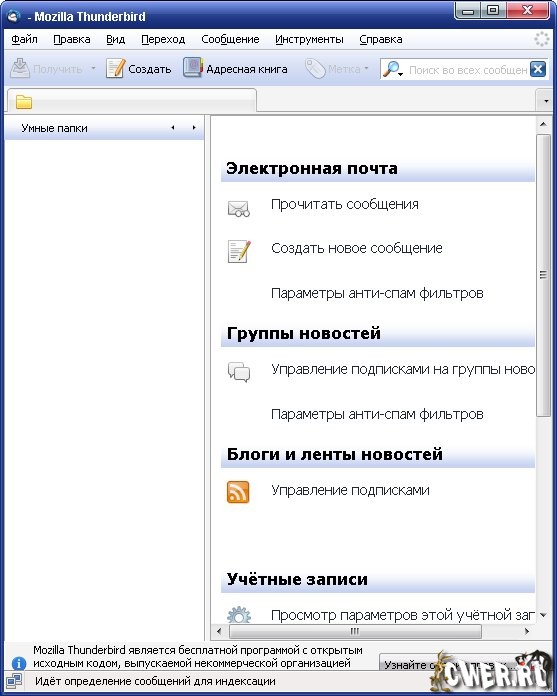 Thunderbird - простая и удобная бесплатная программа для работы с электронной почтой от Mozilla. Программа поддерживает протоколы SMTP, POP3, IMAP и RSS. Имеет встроенный HTML редактор, который создает довольно компактный код, что в свою очередь уменьшает итоговый размер отправляемых писем в несколько раз. Поддерживает всевозможные кодировки, расширяется за счет дополнительных модулей и фильтрует рекламу, а так же нежелательную корреспонденцию. Интерфейс программы основан на технологии XUL, разработанной Mozilla Foundation, в результате чего интерфейс на всех платформах выглядит так же, как у приложений, разработанных для этой конкретной платформы. Интерфейс программы прост и удобен в использовании, поддерживает смену скинов. Во второй версии программы включено множество новых возможностей, помогающих вам лучше управляться с бурным потоком информации, устремляющимся в ваш почтовый ящик и быть в курсе последних событий.