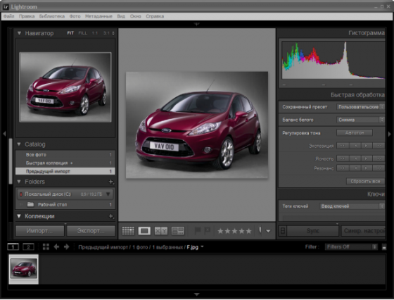 - коррекция цветовых и тональных параметров изображений (Develop)