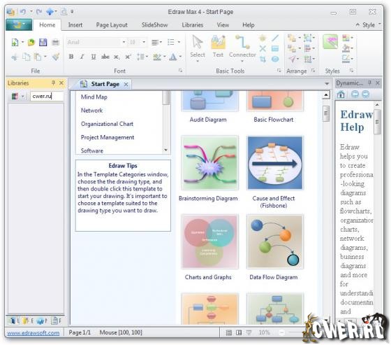 Edraw Max - многофункциональная программа для рисования диаграмм, графиков, бизнес планов и т.д. Программа обладает функциями, которые делают её идеальным решением не только для профессионально-выглядящих блок-схем, организационных схем, сетевых диаграмм и бизнес карт, но также и для построения планов, UML диаграмм, трудового процесса, структур программ, сетевых диаграмм, чартов и графики, указательных карт и диаграмм баз данных. Благодаря более 4500 встроенным векторным символам, которые понадобятся вам при создании диаграмм и графиков, рисование никогда не было таким легким. Вы сможете создавать широкий спектр бизнес-схем и презентаций на основе встроенных в программу шаблонов и примеров. Программа поддерживает работу с вкладками, благодаря чему вы сможете работать с несколькими проектами из одного окна одновременно.
