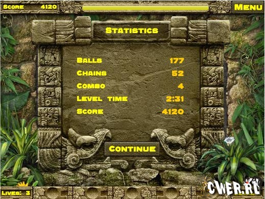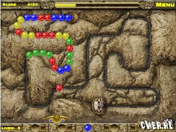 В игре Вам предстоит отправиться на поиски сокровищ времен древней цивилизации. Используйте смекалку и сообразительность, стреляя по движущейся цепи из разноцветных шаров таким образом, чтобы составить в ряд шары одного цвета и сделать так, чтобы они исчезли!