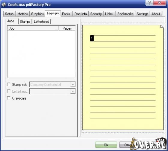 FinePrint PdfFactory Pro - удобная программа, представленная в виде драйвера виртуального принтера, для создания документов в формате PDF. Поддерживает создание PDF-проектов из нескольких документов или файлов и имеет режим предварительного просмотра. Возможна установка запрета на редактирование документа, его шифрование и установка пароля на открытие. Профессиональная версия по сравнению со стандартной имеет возможность добавления номеров страниц, верхних и нижних колонтитулов, водяных знаков, возможностью создания закладок и некоторые другие дополнения. В третьей версии добавлена возможность сохранения в формат FP, возможность настройки пользовательского интерфейса, настройка графики для цветных и монохромных файлов в отсканированных документах.