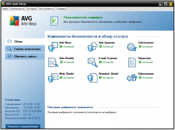 - 100% обнаружение вирусов. Антивирусный сканирующий механизм AVG обладает многими наградами за качество обнаружения вредоностного кода, включая VB100%. Уникальная комбинация методов обнаружения программы AVG обеспечивает полную защиту против вирусов, червей и троянов.