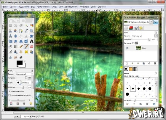 При помощи фильтров, инструментов, масок и слоёв с разными типами наложения (всего 22) можно: