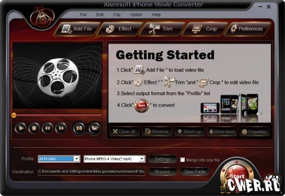 Aiseesoft iPhone Movie Converter - менеджер мультимедийных файлов. Помогает быстро находить, просматривать (прослушивать) и конвертировать картинки, видео и звуковые файлы.