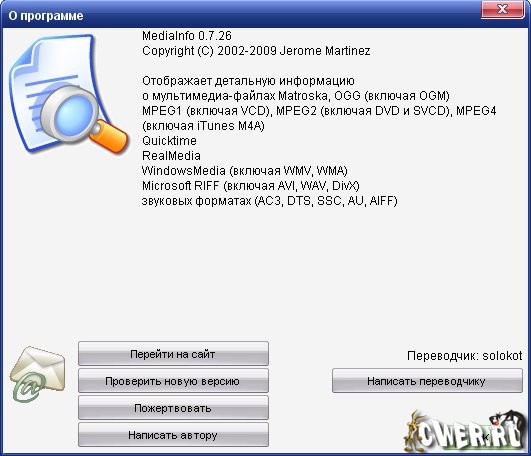 Скачать программу MediaInfo 0.7.26 Final (2,08 МБ):