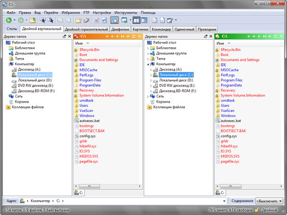 Directory Opus - мощная альтернатива Проводнику с настраиваемым интерфейсом, встроенным ftp-клиентом, внутренней поддержкой архивов, просмотром изображений, встроенным командным языком, настраиваемыми горячими клавишами для управления и очень большим числом других полезных при работе с файлами опций. Например, поиск дубликатов, безвозвратное удаление файлов, поддержка SSL и SSH/SFTP, конвертирование графики и т.д.