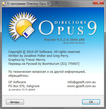 Отключаем инет,инсталлируем прогу. До первого запуска (!) помещаем прилагаемые файлы docs.dll, dopus.exe, dopuslib.dll в директорию программы ( по умолчанию C:\Program Files\GPSoftware\Directory Opus ), а russian(1).dll в C:\Program Files\GPSoftware\Directory Opus\Language. Ставим лицензию (см Readme), в настройках указываем русский язык, отключаем автоматическое обновление (обязательно!). Все, включаем инет,пользуемся!