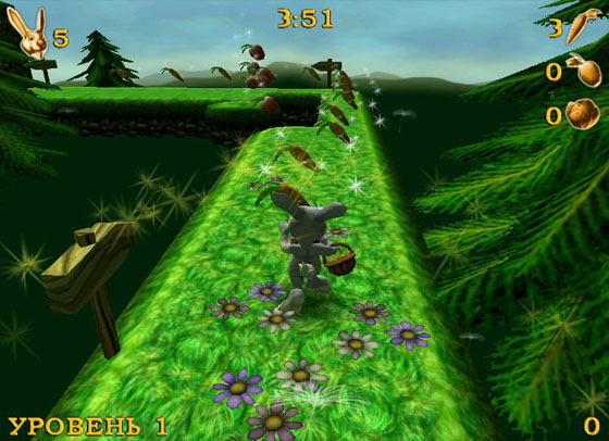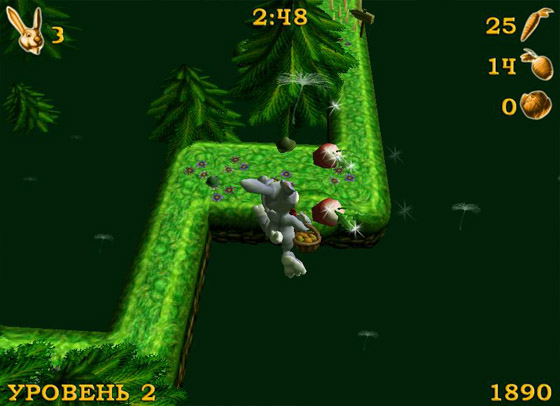 Симпатичный пасхальный кролик с длинными ушами и забавной мордочкой развеселит не только младшее поколение геймеров, но и их более опытных коллег. Тем более что игра не так проста, как кажется на первый взгляд. Вместе с ушастым компаньоном вам придется попрыгать по всем типам пересеченной местности: полям, лесам, горам и даже заснеженным пустыням! Уворачиваясь от опасностей и отважно перепрыгивая глубокие пропасти, не забывайте собирать морковку, брюкву, а также другие корнеплоды, попадающиеся на пути.