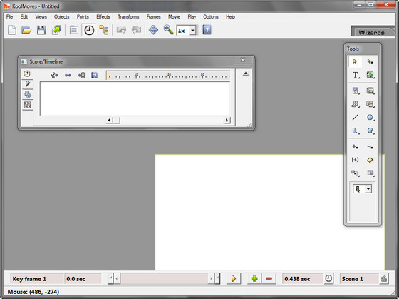 KoolMoves - программа для создания анимационных эффектов в формате Macromedia Flash (.SWF) и кадров для анимированных GIF-файлов и анимации в других популярных форматах. В программе имеется: инструментарий для рисования объектов различной формы, импорт векторной графики, добавление звуковых файлов, множество различных эффектов, в том числе текстовые эффекты, добавление действий к тексту и кадрам. Программа также имеет готовые шаблоны, библиотеку кнопок и векторных заготовок.