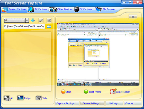 Cool Screen Capture - хорошая утилита, которая позволяет пользователям делать запись своей настольной деятельности. Профессиональная методика и интуитивный интерфейс делают это подходящим для каждого пользователя. Пользователи могут фиксировать видео или изображение с DV, TV тюнера и других устройств.