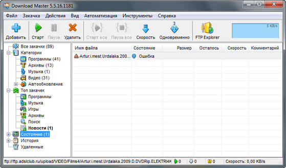 Download Master позволяет значительно повысить скорость закачки файлов через Интернет с использованием HTTP, HTTPS и FTP протоколов. Для этого используется разбиение файла на потоки, которые закачиваются одновременно. Программа также поддерживает докачку файла с текущей позиции после обрыва связи.