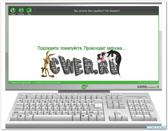 да это уже "ломаная" версия, остается только ввести серийничек - и все работает. + пересборка, удалено яндес бар..тулбар и пр...так что качаемся и тренируемся...Я прошел курс за два месяца тяжелого труда, сейчас набираю очень легко и спокойно дясятью пальчиками..не верил! Вообще не мог представить, как я смогу вслепую набирать, еще и десятью пальцами! Прошел курс, заставлял себя это сделать, и теперь не представляете как я Мега доволен!!! Скорость нормальная, ошибки есть в наборе, но минимальны, будет время обязательно повоторю куср!