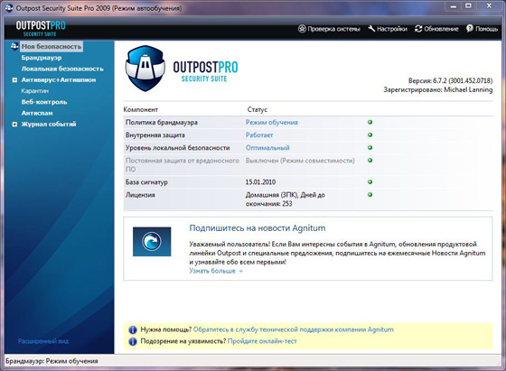 Вне зависимости от того, кто вы – новичок или эксперт в компьютерной безопасности, Outpost Security Suite Pro просто настраивается для ваших потребностей. Используйте встроенную помощь настолько, насколько вам это необходимо; автоматизируйте защиту настолько, насколько вам это необходимо; воспользуйтесь также преимуществом системы ImproveNet, вобравшую в себя опыт других пользователей. Интерфейс программы интуитивно ясен, так что какие бы вы настройки ни выбрали, вы получите требуемый вам уровень защиты.